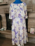 Beautiful Cream and Purple Floral Dress with a Chiffon overlay. Great as a special occasion dress, an evening out or a anytime you want to feel amazing! Size 12
