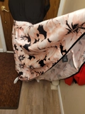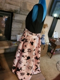 Luxurious Size 16-18, Black and Floral High-Low Special Occasion Dress! Features a V-Neck in front with a Fitted Black Top Portion. The Bottom flows freely and has a Gorgeous Pink and Black Floral Print which is Higher in the Front and lower in the back.